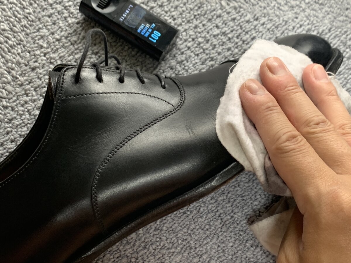 ここまできたら、あとは靴全体を柔らかいネル生地やポリッシンググローブで磨くだけです。